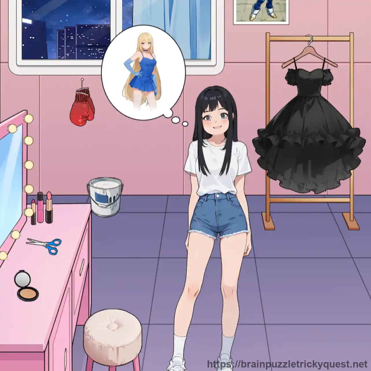 - The wall poster provides clothing in Tricky Quest - cut the dress from it
