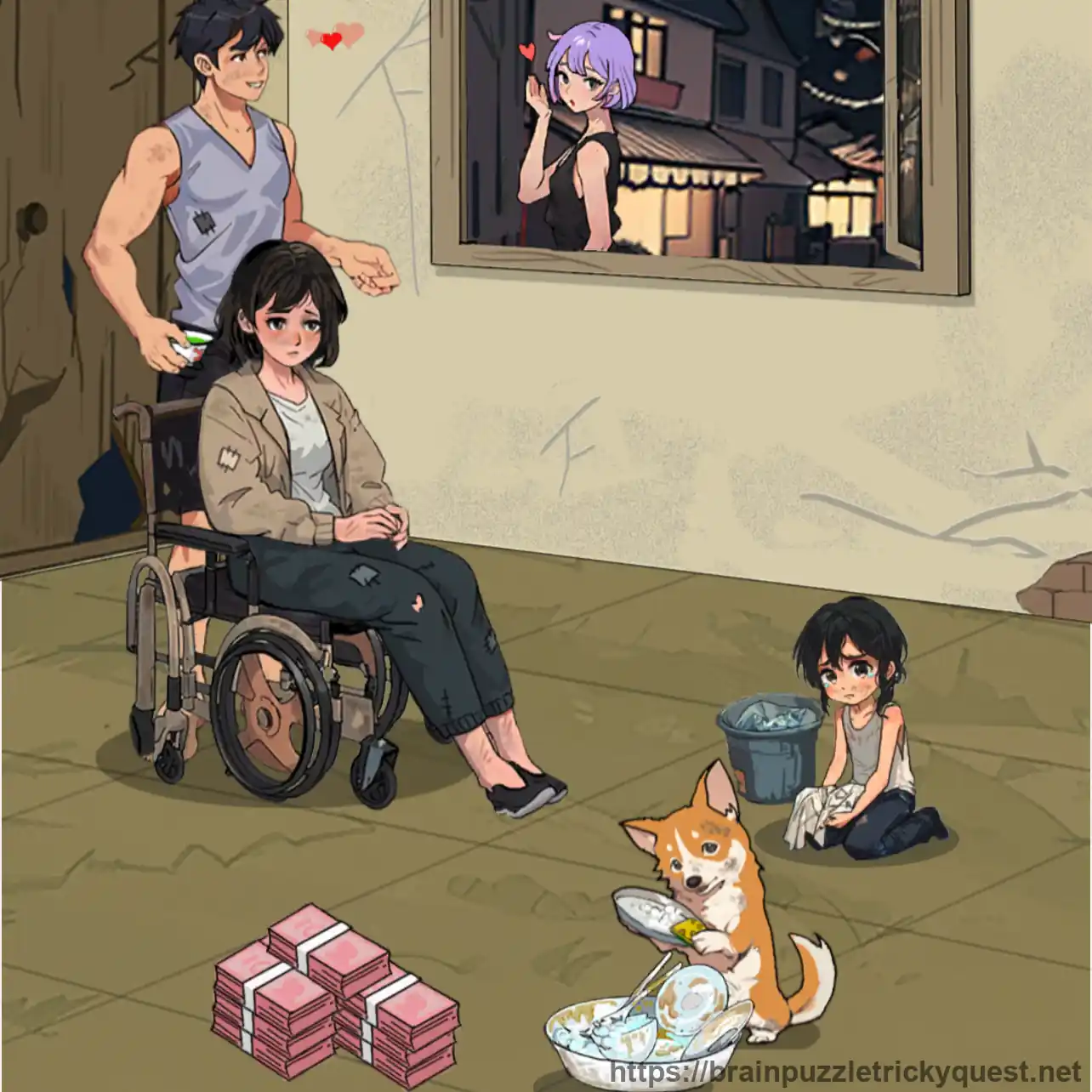 A young girl looks out her window and witnesses a horrifying crime - a murder taking place in the building across from hers. Terrified that the killer might notice her, she realizes she must escape immediately. But there's no safe way down through her building. Her only option is to create an impossible bridge using whatever objects she can find around her, crossing the dangerous gap to reach the opposite building and safety. In Brain Puzzle Level 76, survival depends on creative thinking and using every resource available.
